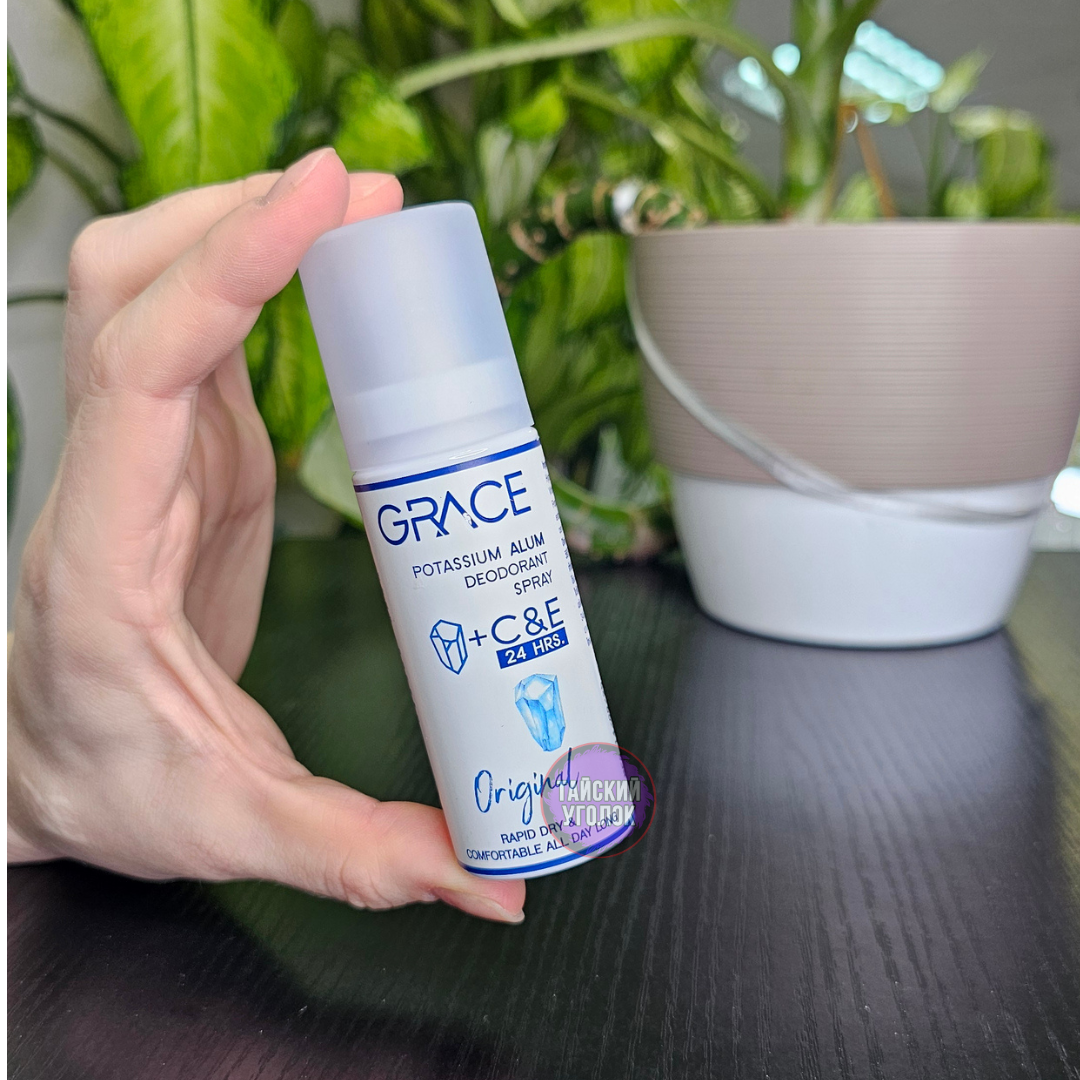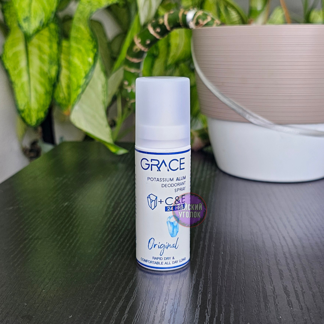 Эффективное средство от запаха пота, которое не блокирует поры и подходит для чувствительной кожи - Grace Deodorant Spray Original — это 100% натуральный кристаллический дезодорант, основанный на алюмокалиевых квасцах, который эффективно нейтрализует неприятный запах, не нарушая природную функцию кожи. Без спирта, парабенов и синтетических ароматизаторов, он идеально подходит для тех, кто предпочитает простоту и натуральность в уходе.
