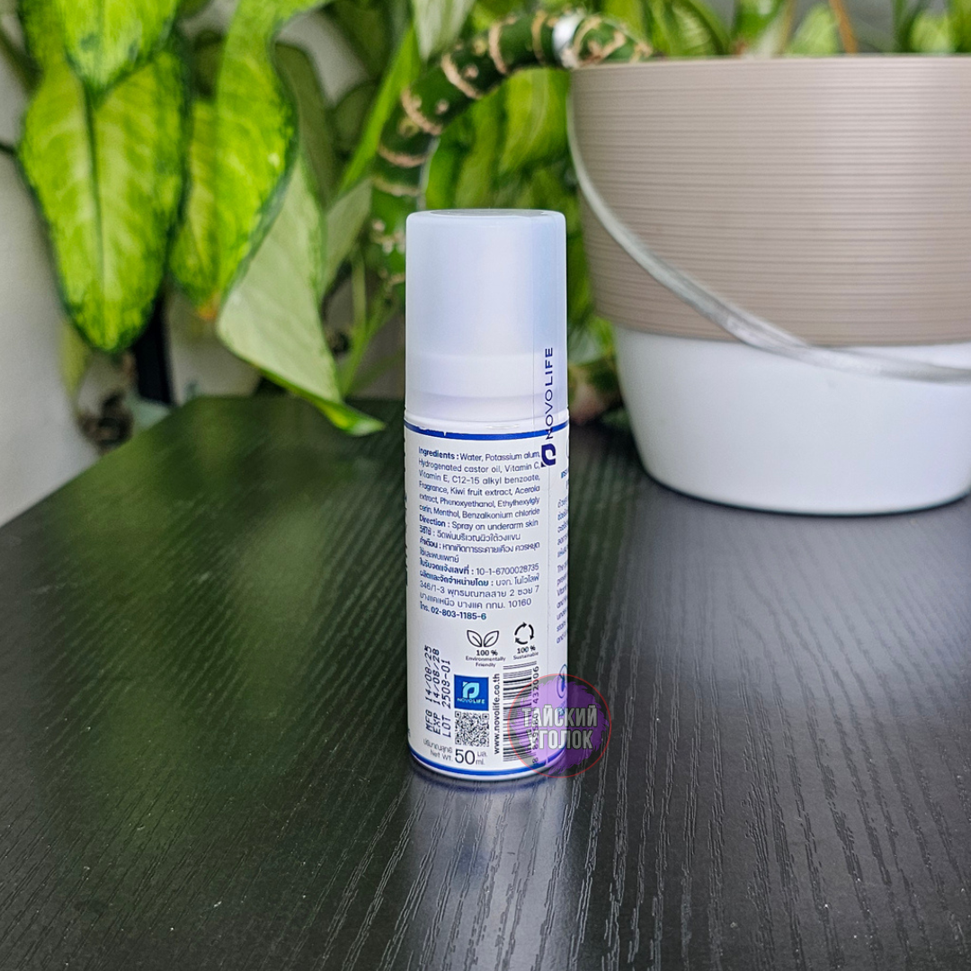 Potassium Alum (алюмокалиевые квасцы) — активный ингредиент, нейтрализующий запах пота без блокировки пор.