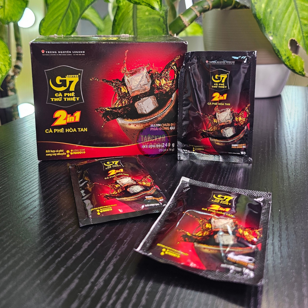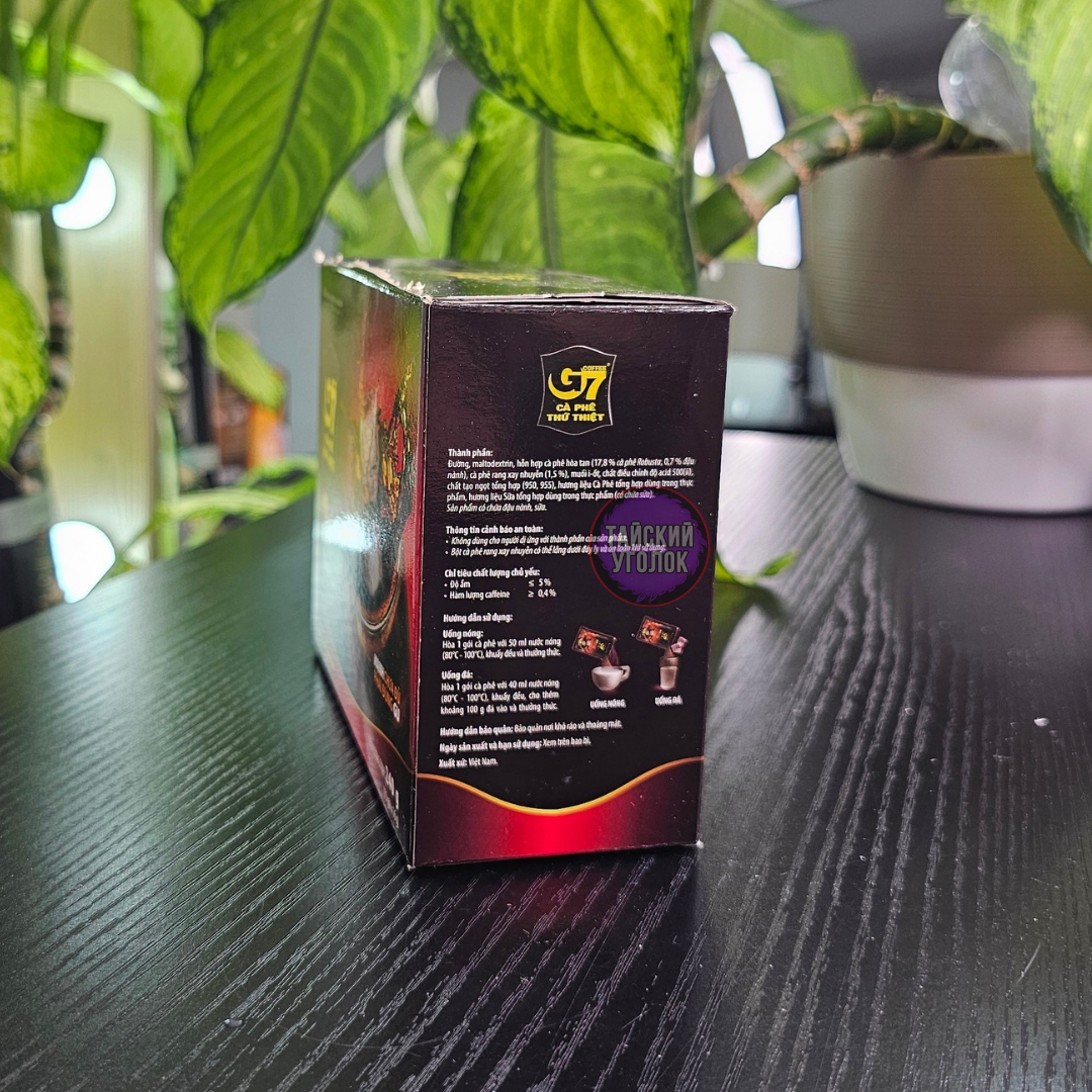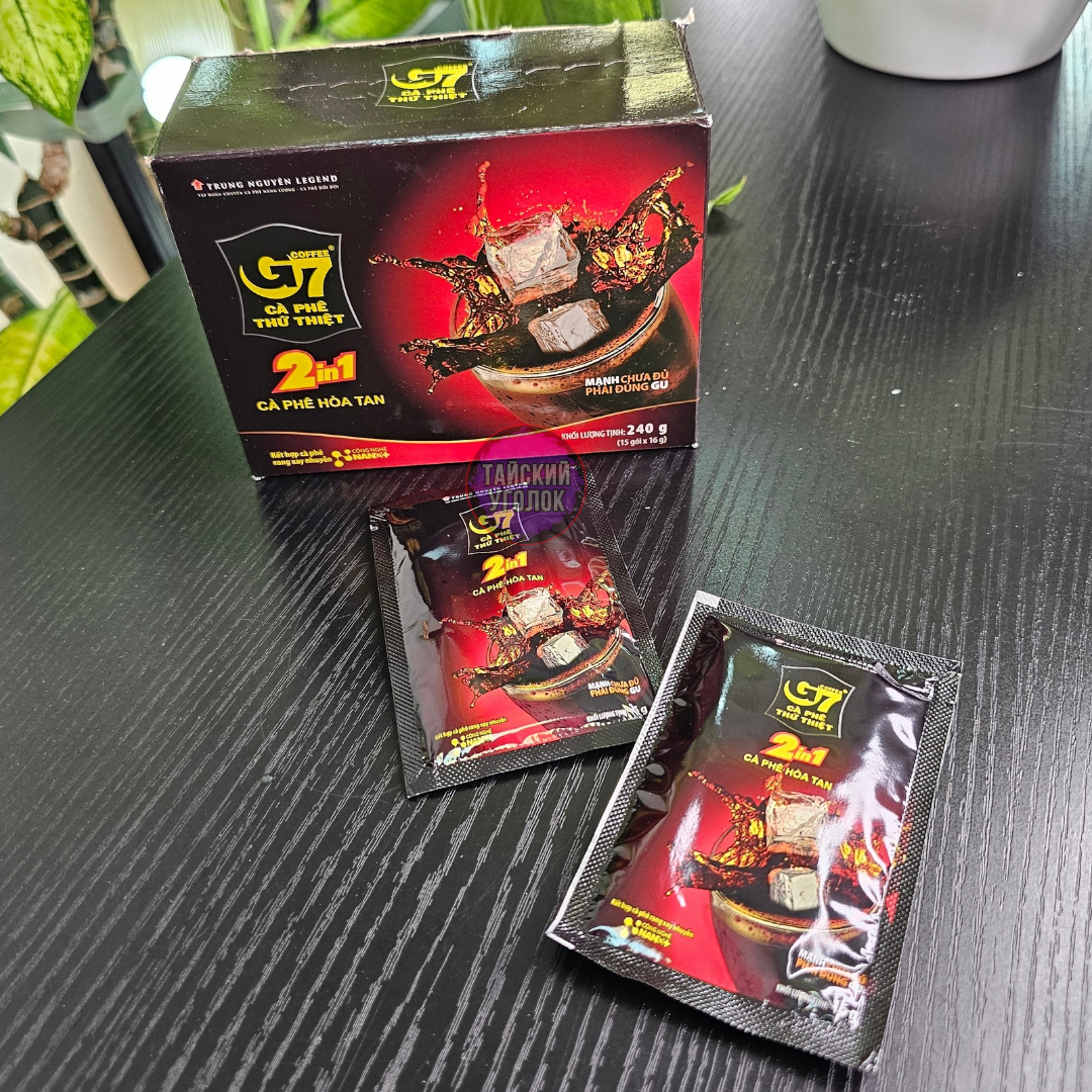 Бренд кофе G7 — это один из самых популярных брендированных растворимых кофе во Вьетнаме. Он произведен компанией Trung Nguyên и славится своим насыщенным вкусом и ярким ароматом. G7 предлагает различные виды кофе, включая натуральные и с добавлением тростникового сахара, что позволяет каждому выбрать подходящий вариант. Удобная упаковка и яркий дизайн делают его привлекательным для покупателей.