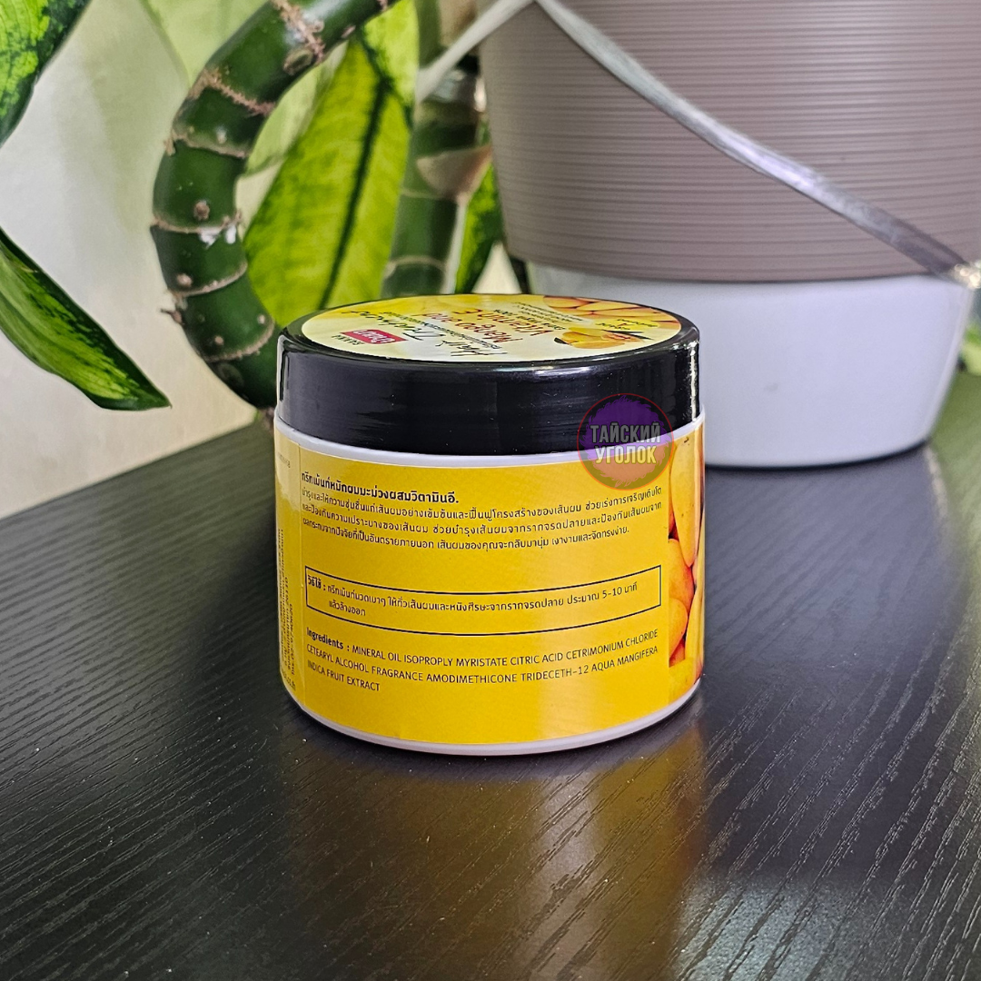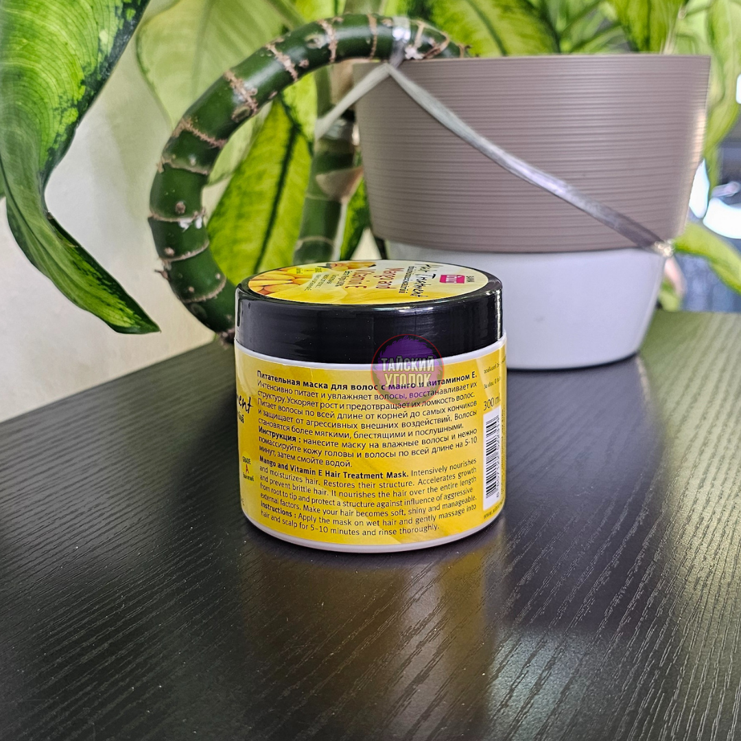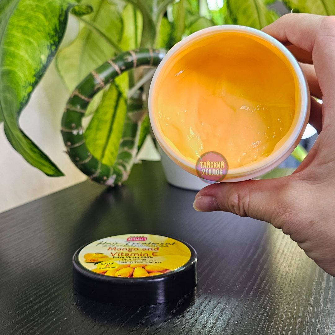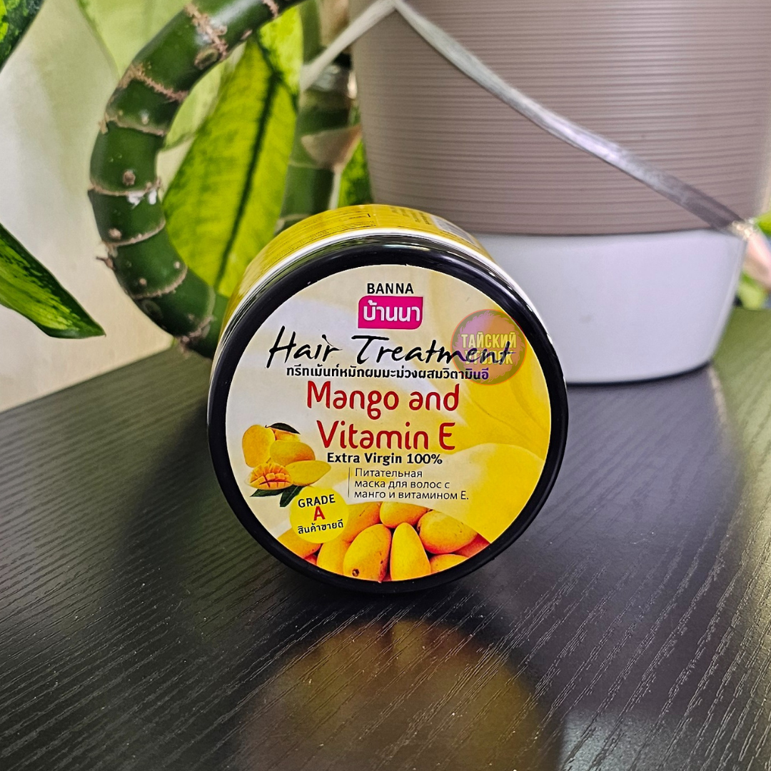 Бальзам-маска для волос с манго и витамином Е Hair Treatment Mango and Vitamin E, 300 ml тайской фирмы Banna восстанавливает нормальный рН баланс кожи головы, обладает сильным антиоксидантными свойствами и помогает сохранить естественный цвет волос. Глубоко питает от корней до самых кончиков, решая проблемы поврежденных, сухих и секущихся волос, делая их здоровыми, сияющими и послушными. Эффективно защищает от воздействий солнечных лучей, создает защитную пленку на волосах и препятствует их спутыванию. Маска так же восстанавливает структуру волос после химических воздействий.