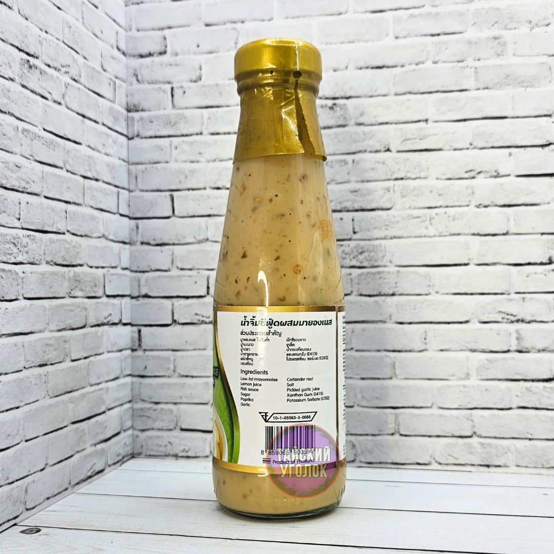 Ирнгридиенты: майонез с низким содержанием жира, лимонный сок, рыбный соус, сахар, паприка, чеснок, смесь корней кориандра, соль, вкусный маринованный чеснок, ксантановая камедь (E415), сорбат калия (E202).