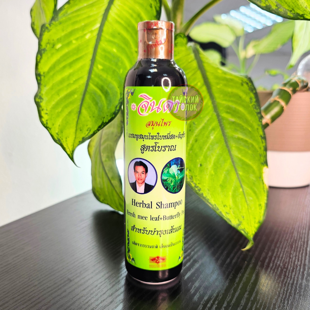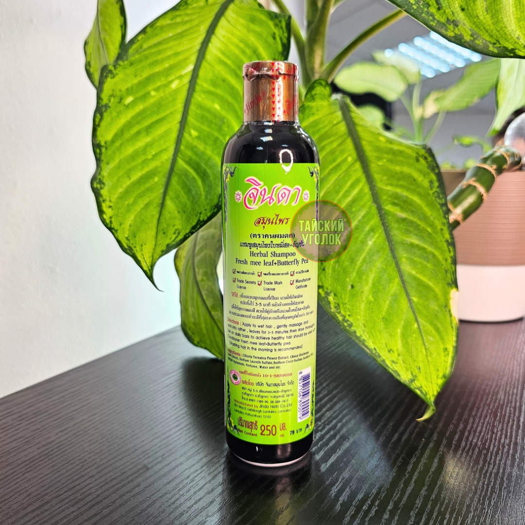 Травяной шампунь против выпадения волос от тайского бренда Jinda (Джинда) помогает укрепить корни, активизирует рост, улучшает структуру, сокращает количество выпавших волос, предотвращает образование перхоти. После применения шампуня волосы будут легче укладываться в прическу. Имеет восхитительный травяной аромат. В шампунь входят целебные растительные компоненты: экстракты летсеи клейкой (баймисот) и клитории тройчатой (синий чай).